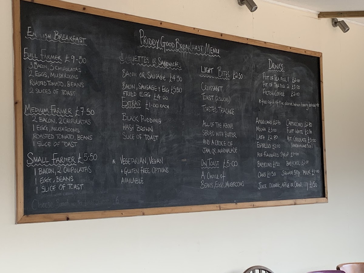 The menu offers a selection of locally sourced food items primarily suited for breakfast and light meals. Visitors can expect traditional breakfast options, including full English breakfasts and vegetarian alternatives, prepared using fresh, farm-sourced produce. The menu is straightforward, focusing on well-prepared essentials without elaborate ingredients or presentation.